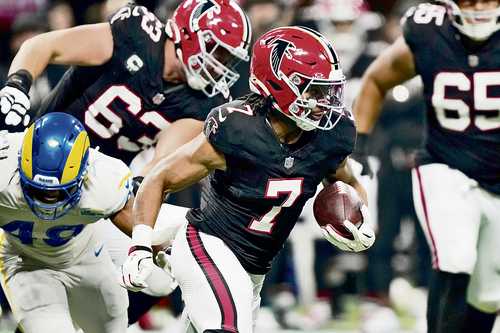 ▲ El jugador de los Halcones de Atlanta Bijan Robinson rompe récord del equipo en carrera de anotación.Foto Ap