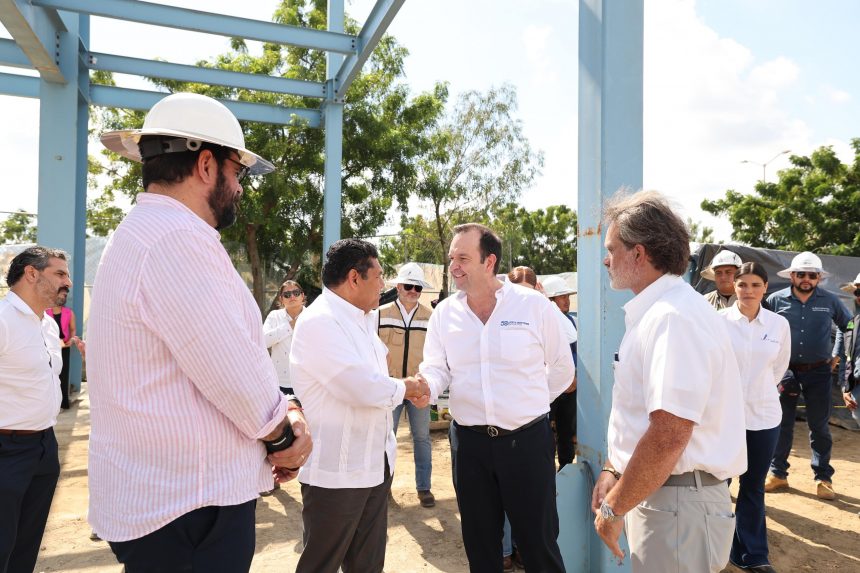 Acompañado por la secretaria de Turismo y Desarrollo Económico, Katia Ornelas Gil, y el director médico del Grupo Fifty Doctors, Jorge Marcos Martínez, el mandatario realizó un recorrido por las áreas que constituyen la primera etapa del nosocomio, que se ubicará en la zona residencial Villa Brisa, a espaldas de Plaza Altabrisa.