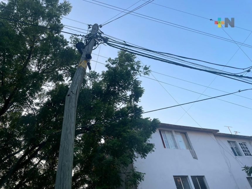 Veracruz, Ver.- Desde hace más de cuatro años, habitantes de la colonia Infonavit El Morro reportan el riesgo que representa un poste de luz inclinado y a punto de colapsar.