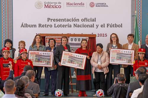 La colección está compuesta por 20 cachitos, incluye un álbum de regalo para las personas que adquieran la serie completa –alrededor de 700 pesos en total– y tiene un premio mayor de 11 millones de pesos en el sorteo a celebrarse el 11 de enero. Cada imagen contiene pasajes de los Mundiales, estampas de la organización de México 1970, las finales del mundo de 1938, 1954 y otras ediciones, entre ellas la que jugaron las mexicanas en 1971, el trofeo de la antigua Copa Jules Rimet y la arquitectura de los estadios sede en 1986. “El Mundial está cerca. Esta colección nos ayuda a recordar, lo cual es un acto profundamente político. Un pueblo que conoce su historia no acepta desprecio ni olvido”, afirmó la jefa de Gobierno de la Ciudad de México, Clara Brugada, desde el Centro Social y Deporti-vo del Sindicato Nacional de Trabajadores de la Salud.