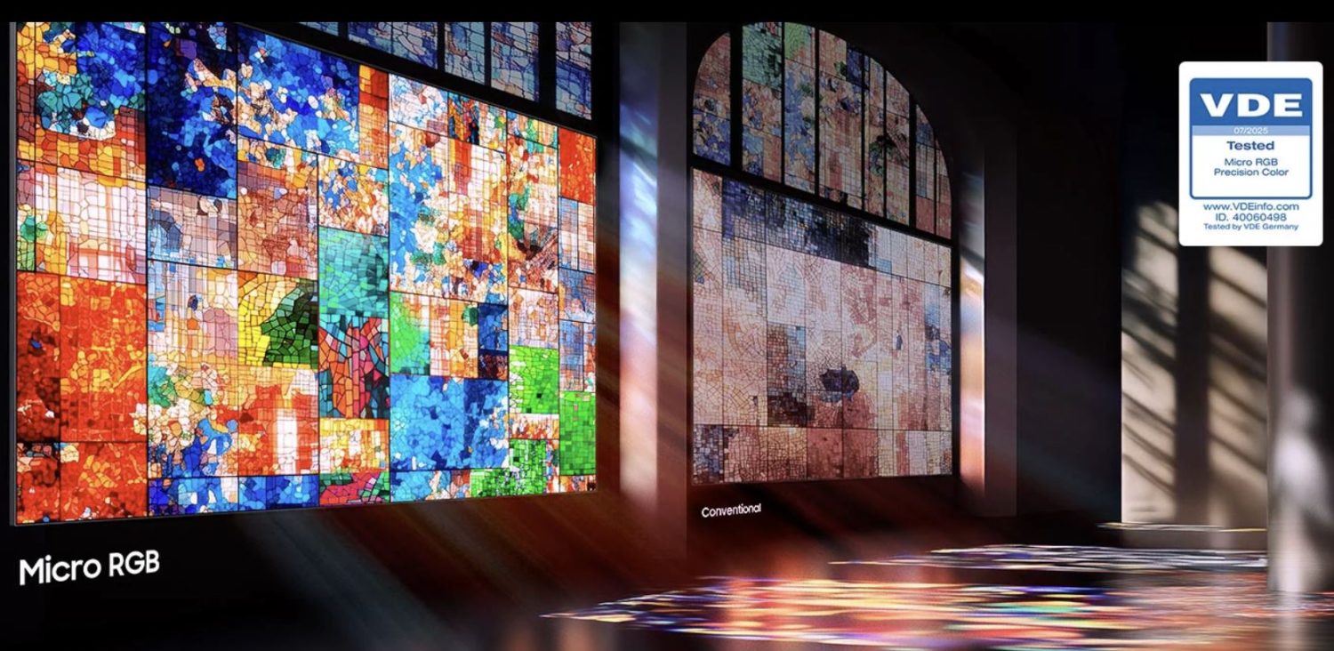 Es este modelo el que servirá como base para la nueva generación de televisores Micro RGB de Samsung de 2026. Entre sus características encontramos una pantalla que utiliza Micro RGB LEDs rojos, verdes y azules de menos de 100 micrómetros que emiten luz de forma independiente. La compañía menciona que esta arquitectura le permite alcanzar una gama más amplia de colores e intensidades que no se consiguen con el OLED o Mini-LED.