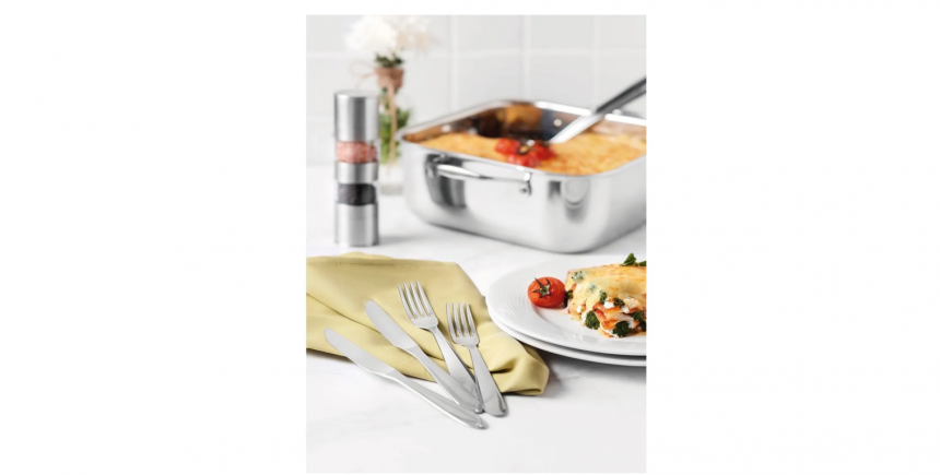 ● Los cubiertos de acero inoxidable ofrecen un diseño atemporal que aporta brillo y elegancia a la mesa, resistiendo el uso constante sin perder su apariencia.