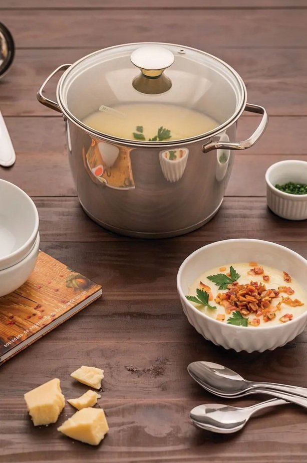 ● Las ollas y cacerolas de acero inoxidable Allegra son el aliado perfecto, ya que su diseño garantiza que el calor se distribuya de manera uniforme, evitando puntos calientes y asegurando que las preparaciones se cocinen a la perfección.