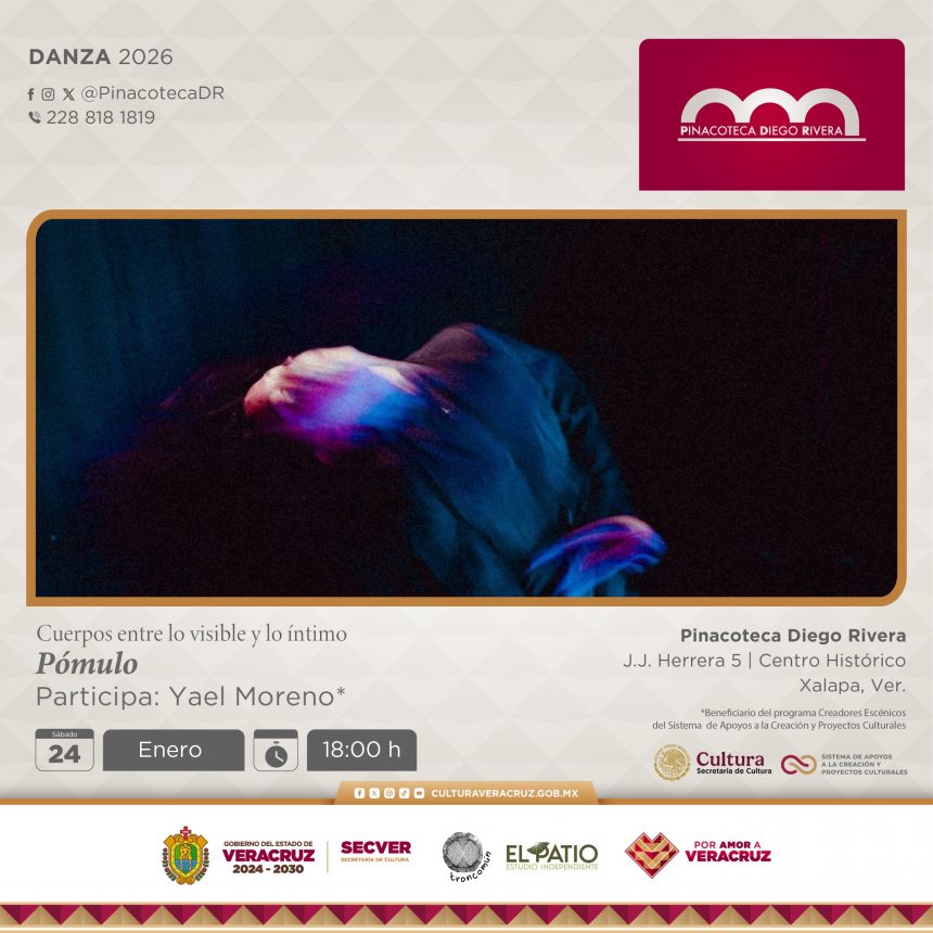 Xalapa, Ver.- La Secretaría de Cultura de Veracruz invita al ciclo escénico de danza Cuerpos entre lo visible y lo íntimo, que tendrá lugar los meses de enero, febrero y marzo en la Pinacoteca Diego Rivera, en el marco de la exposición Ricardo Martínez,Entre lo visible y lo íntimo. La entrada es libre.