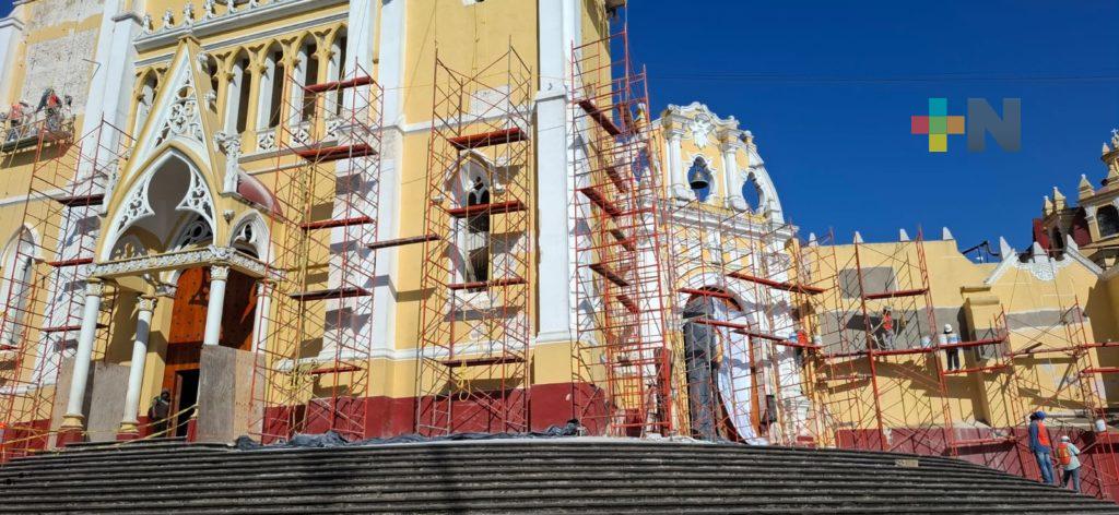Xalapa, Ver.- Como parte del proyecto para armonizar la imagen del Centro Histórico de Xalapa, implementado por la gobernadora Rocío Nahle García, se realizan trabajos de restauración en la Catedral Metropolitana.