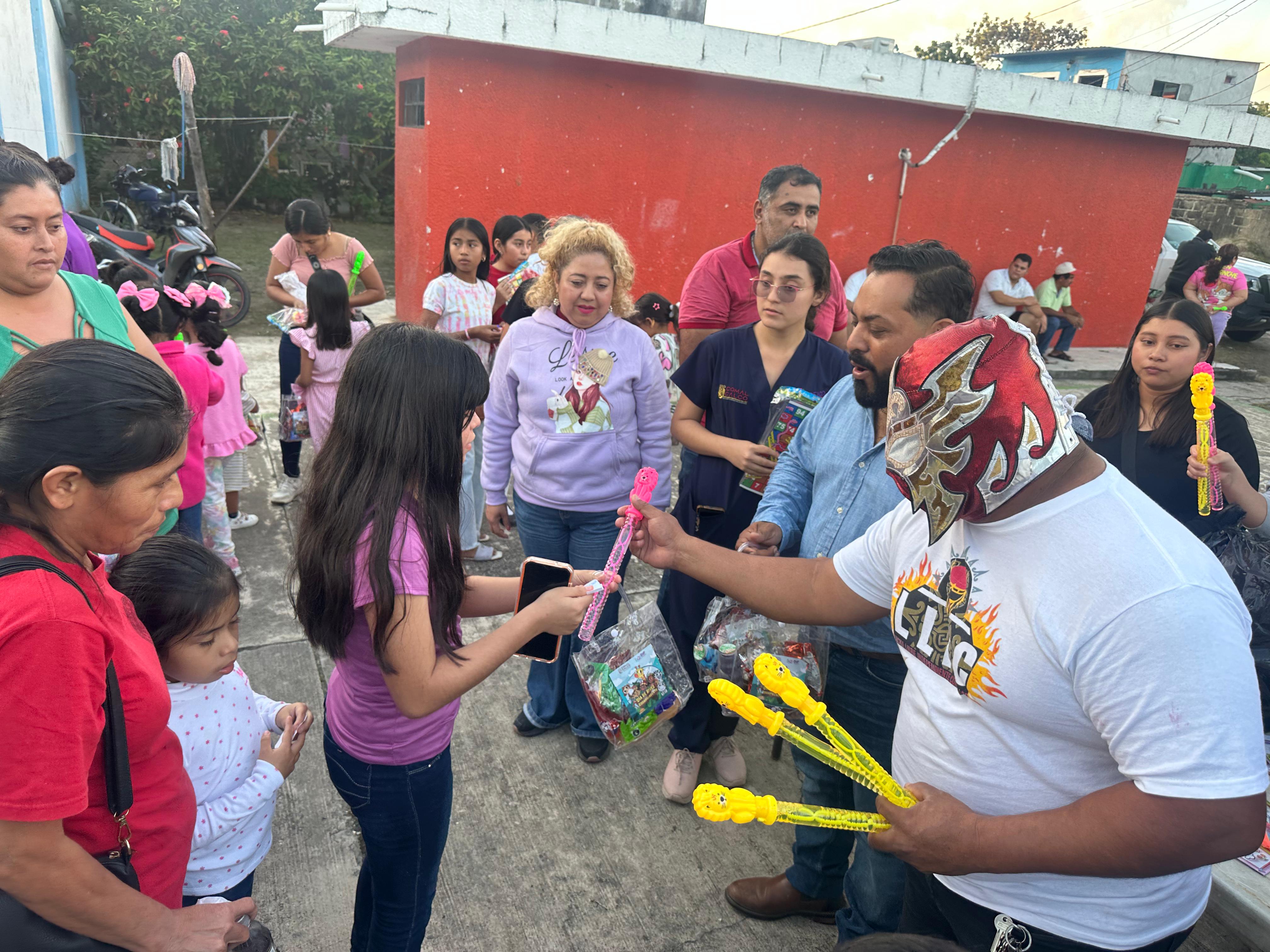 Por parte del DIF municipal se realizaron cortes de cabello gratuitos para niñas y niños, labor a la que se sumó con gran entusiasmo la barbería Black and White, y el luchador Black Star, de la Liga Independiente de Lucha Libre de Comalcalco, también llevó regalos para las y los menores.