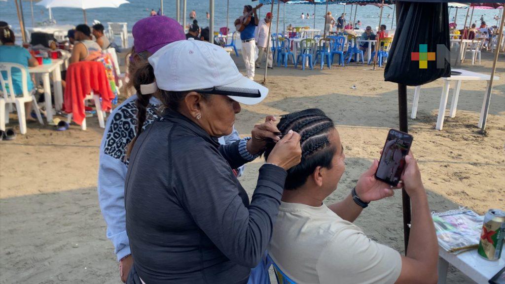 Con la salida del sol, familias locales y visitantes acudieron a las playas del puerto para disfrutar de las aguas del Golfo de México. Algunos aprovecharon para caminar por la zona costera, nadar o realizarse las tradicionales trenzas vacacionales, en un ambiente más favorable para actividades al aire libre.