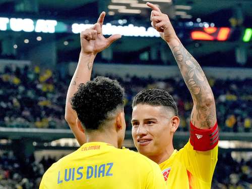 ▲ Luis Díaz, estrella del Bayern Múnich, y James Rodríguez, ex jugador de León, será algunas de las figuras colombianas que estarán el territorio tapatío.Foto @fcfSeleccionCol