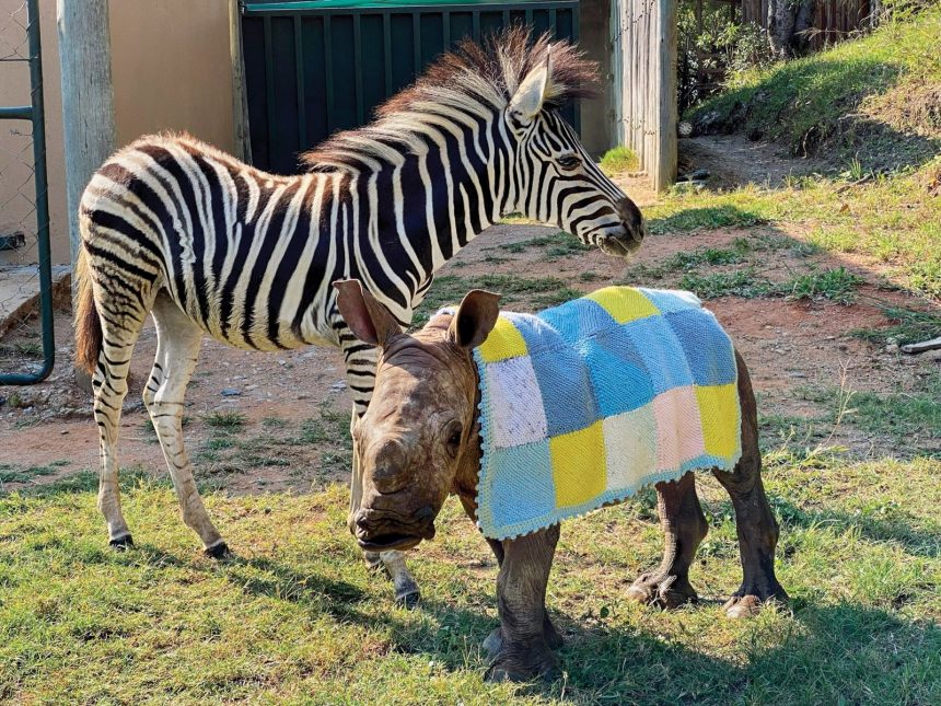 Ya sea jugando con la pelota, persiguiéndose y corriendo, o acurrucándose juntas por la noche, Daisy, la cría de rinoceronte blanco, y Modjadji, la cebra de llanura, suelen ser inseparables en el Care for Wild Rhino Sanctuary de Sudáfrica, donde fueron rehabilitadas. “No te puedes imaginar lo adorables que son estas dos”, dice la fundadora del santuario, Petronel Nieuwoudt, refiriéndose a los dos animales que ayudó a criar.