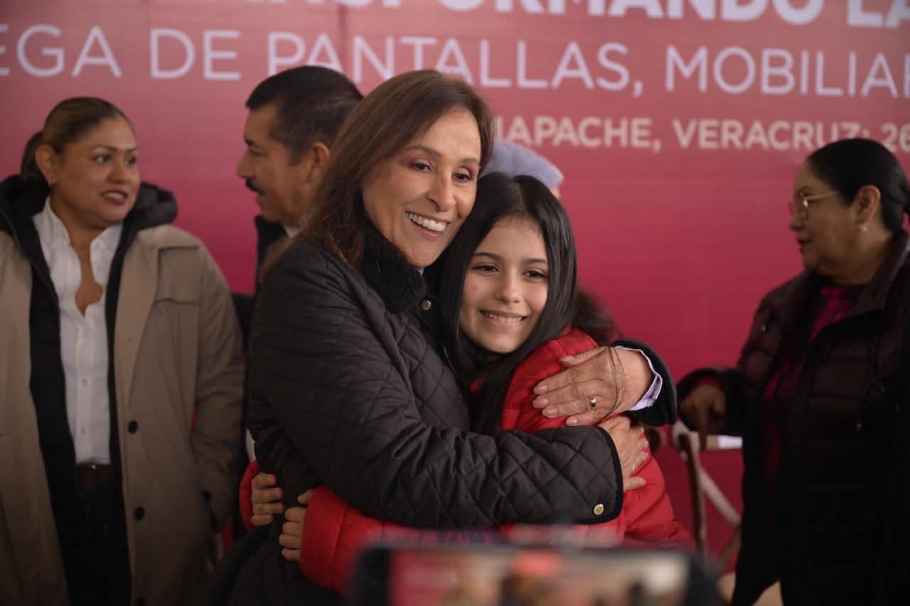 Acompañada de la secretaria de Educación de Veracruz, Claudia Tello Espinosa, y del alcalde José Roberto Arenas Martínez, informó que esta semana recibirán mochilas y útiles las niñas y los niños de preescolar, y la próxima, los de primaria, extendiendo el respaldo a municipios de la región Huasteca.