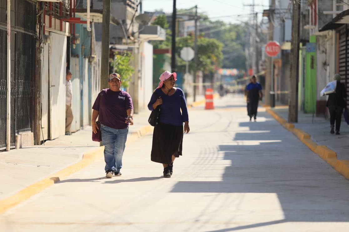 Al formar parte de la comitiva ciudadana que salió a las calles recién pavimentadas a agradecer y acompañar al Gobernador Javier May en el recorrido de supervisión, la vecina María del Carmen reconoció que el andador de Zapatero estaba muy deteriorado, con la calle destrozada y banquetas irregulares, realidad que tras el trabajo del Gobierno del Pueblo cambió a favor del bienestar de las familias.