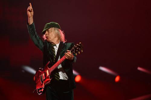 ▲ Angus Young, guitarrista principal de la banda australiana AC/DC, durante su gira PowerUp Tour 2024, en Alemania Occidental.Foto Afp
