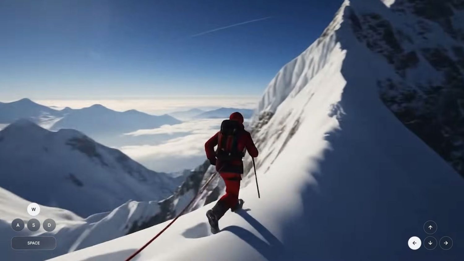 La diferencia principal de Project Genie con otros experimentos que hemos visto es que los mundos son interactivos. El usuario puede usar la combinación de teclas W, S, A, D para mover a un personaje en el escenario. La IA ofrece vista en primera o tercera persona, como si se tratase de un videojuego de disparos o de aventura.