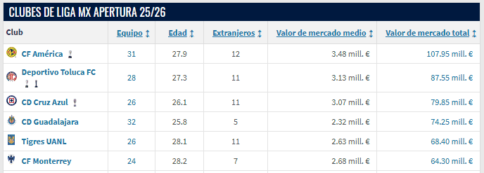 Los campeonatos europeos como la Premier League de Inglaterra, La Liga de España, la Bundesliga de Alemania o las ligas domésticas de Italia y Francia son dominadas por un máximo de tres equipos, esto debido a que han construido su dominio a través del dinero: fichajes de alto valor económico y deportivo. Este fenómeno, aunque en menor medida, está siendo replicado en la Liga MX. Tan solo los semifinalistas del torneo pasado (Toluca, Monterrey, Cruz Azul y Tigres) cuentan con una plantilla superior a 60 millones de euros, según la plataforma Transfermarkt. En comparación, Santos, equipo que se quedó en la línea del Play-In, tiene una plantilla cincuenta millones de euros más barata que la del campeón Toluca.