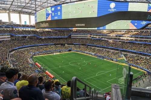 ▲ Mientras recintos como el Sofi Stadium en California tienen tecnología de punta para atender la demanda de conectividad de los miles de asistentes, en el país los estadios sólo alcanzan un tercio de la capacidad que existe en Estados Unidos y Canadá, coanfitriones de la Copa del Mundo.Foto Sofi Stadium
