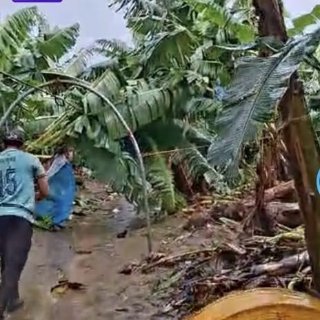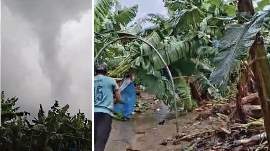 El fenómeno meteorológico poco común asustó a los pobladores y dejó importantes estragos en platanales y algunas viviendas