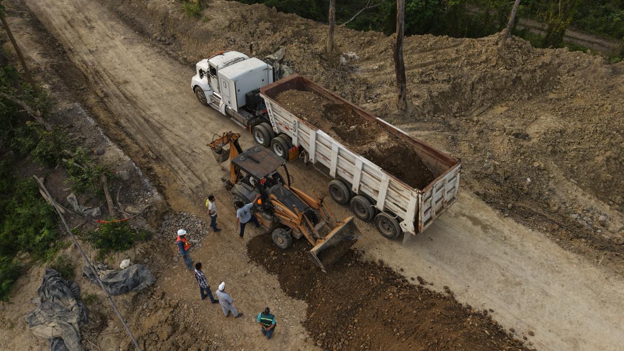 En Ixcatepec, instruyó a garantizar la calidad de la obra y el cumplimiento de los tiempos de ejecución para restablecer de manera segura la conectividad en un tramo afectado por una socavación provocada por las lluvias, al tratarse de una vía que conecta el entronque con la carretera federal.