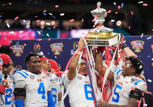 ▲ Los Ole Miss Rebels dieron la sorpresa anoche al vencer 39-34 a los Bulldogs de Georgia en el Sugar Bowl, en Nueva Orleans, y avanzaron a las semifinales de los playoffs del futbol americano colegial. El equipo de la Universidad de Misisipi disputará ante los Huracanes de Miami el boleto a la final el jueves 8 de enero en el Fiesta Bowl, en Arizona.Foto Ap