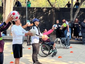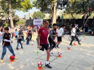 “ El INDEPORTE había estado desarrollando las clases en las Alcaldías y Pilares nos va a corresponder y preparar estas clases aquí en el Monumento a la Revolución para que a fines de febrero, podamos romper el récord Guinness de la clase más grande de fútbol. La idea es que aquí se venga a entrenar. También estamos siendo muy inclusivos, personas amputadas, en silla de ruedas, sordos y ciegos van a también participar muchas niñas y niños y también estuvieron señoras que nunca habían hecho fútbol y que están ya practicando. Vamos a tener grabada la clase para que se pueda practicar”