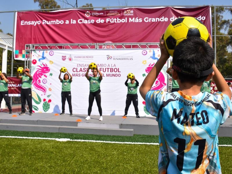 A mes y medio de que se realice la Clase Más Grande de Futbol en México, reiniciaron los ensayos en diferentes sedes de la Ciudad de México como el Deportivo La Purísima en la Alcaldía Iztapalapa, y el Monumento a la Revolución donde recibieron a familias completas para practicar deporte.