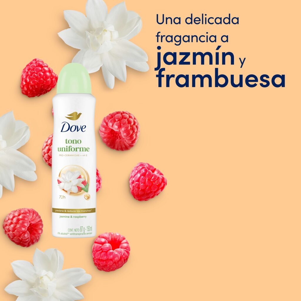 Por ello, Dove eleva la categoría de desodorantes femeninos al integrar ciencia Pro-Ceramida en su línea Dove Tono Uniforme, la cual ayuda a recuperar el tono natural de la piel de las axilas y acompaña a las mujeres con una nueva fragancia sensorial: jasmine & raspberry.