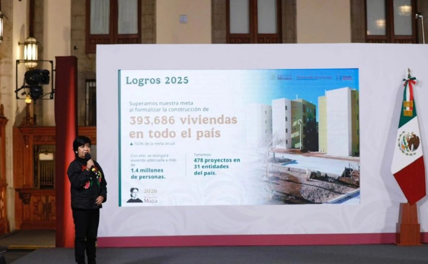 Ciudad de México. En 2025, con el Programa Vivienda para el Bienestar se superó la meta de viviendas contratadas, con más de 393 mil, en beneficio de 1.4 millones de personas, informó Edna Vega, titular de la Secretaría de Desarrollo Agrario, Territorial y Urbano (Sedatu).