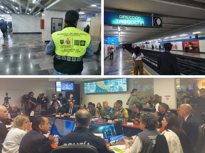 Trabajadoras de comercios y oficinas de gobierno evacuaron inmuebles en el Zócalo y del metro de la Ciudad de México capitalino tras activarse la alerta sísmica en diversos puntos de la Ciudad de México. En el metro la indicación para quien está en anden es pegarse a la pared, quien está en vagón permanecer dentro de él.