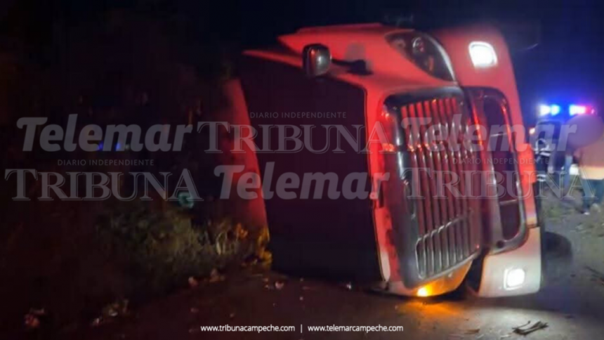 La madrugada de hoy sábado se registró un fuerte accidente sobre la carretera Carmen–Isla Aguada, a la altura del kilómetro 21+500, en la zona conocida como Tulumcito, donde un tráiler terminó fuera de la cinta asfáltica.
