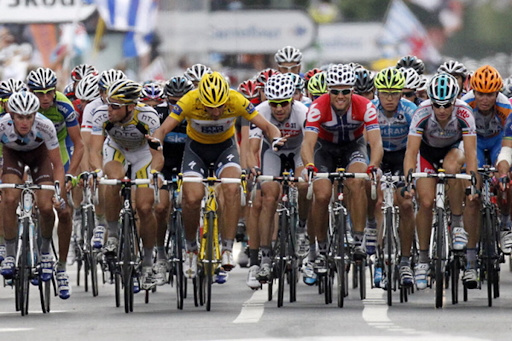 - Maillot amarillo (Maillot Jaune) – lo lleva el líder de la clasificación general por tiempo.