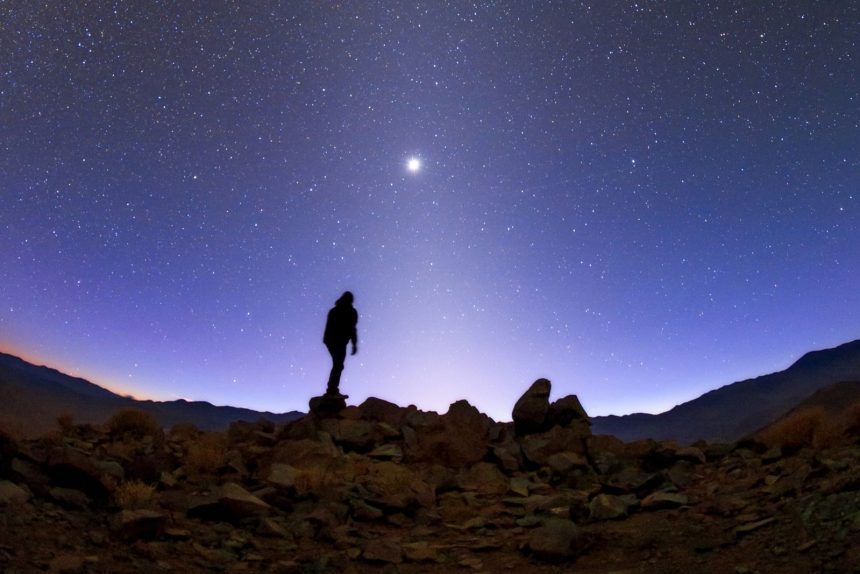 A mediados de marzo también es un buen momento para observar la luz zodiacal, una sutil pirámide de luz sobre el horizonte que se forma cuando la luz solar se dispersa a través del polvo de nuestro sistema solar interior. Es visible hasta mayo, pero es más prominente cerca del equinoccio y bajo cielos oscuros, como los que se dan alrededor de la luna nueva. Obsérvala en el cielo occidental cuando comience el crepúsculo, aproximadamente una hora y media después de la puesta del sol.