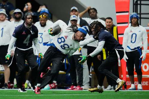 ▲ La Conferencia Nacional se impuso 66-52 ante la Conferencia Americana en el Pro Bowl de la NFL, que se disputó en el Moscone Center días antes del Supertazón. Este enfrentamiento de flag football reúne cada año a los mejores jugadores de la liga durante la temporada regular, con excepción de los equipos que juegan por el título de la NFL. CeeDee Lamb (88), receptor de los Vaqueros de Dallas, sentenció el enfrentamiento al anotar el último touchdown de la noche.Foto Ap, con información de la Redacción