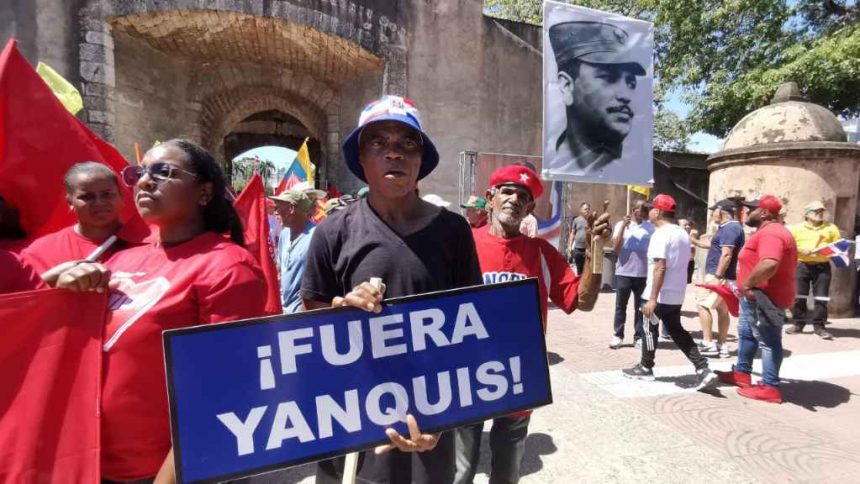 “Fuera yanquis de Quisqueya y el Caribe”, “Defendamos la soberanía nacional” y “No a la presa de cola” se leía en los carteles que acompañaron a los manifestantes durante el recorrido.
