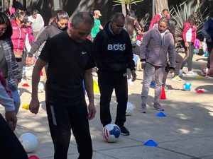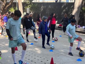 “ La verdad me gusta estar muy activa. Es la primera vez que hago la clase de futbol y el balón se me fue, pero todo bajo control. “