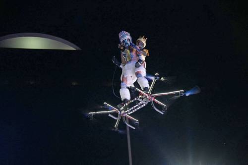 ▲ Un participante de la escuela de samba Portela se presentó anoche montado en un dron en el Carnaval de Río en el Sambódromo Marques de Sapucai en Río de Janeiro, Brasil.Foto Afp