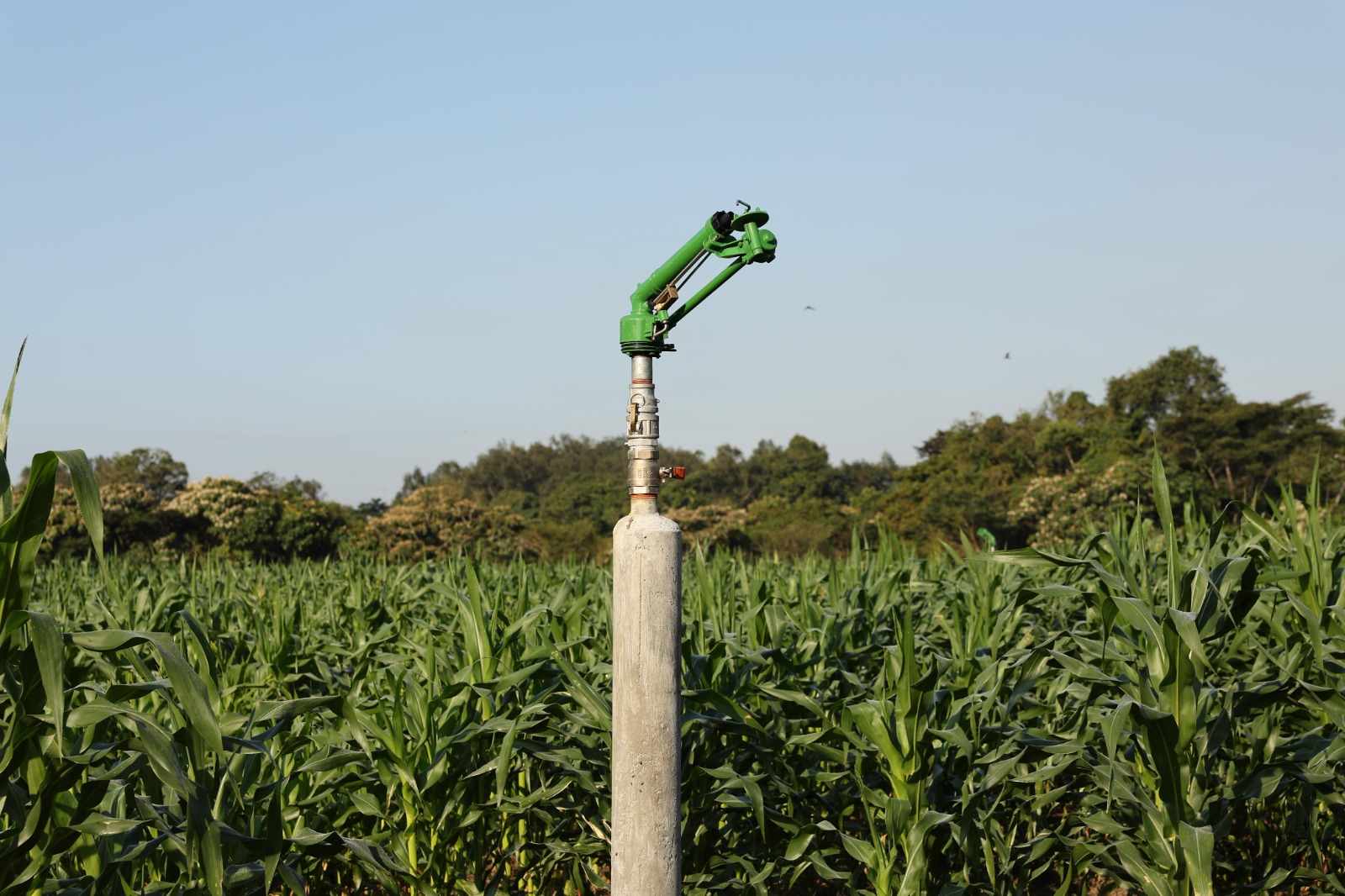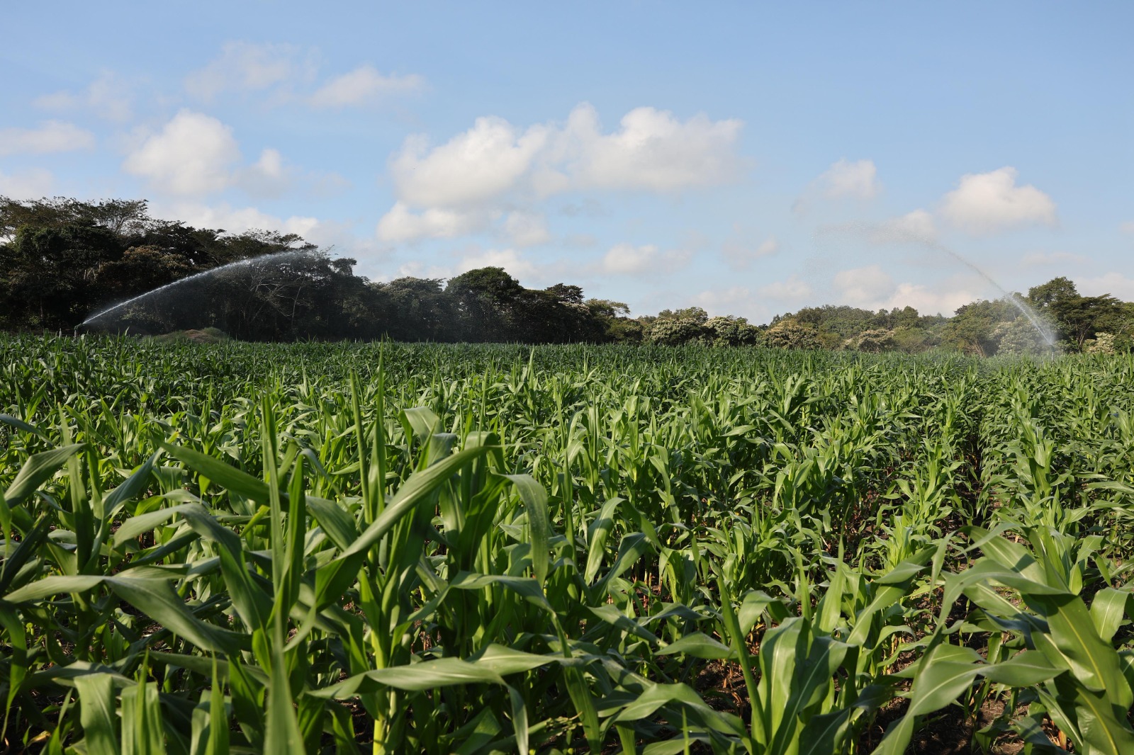 El sistema de riego consta de cuatro cañones, instalados a 36 metros de distancia cada uno, con un alcance de 50 metros, funciona por medio de un pozo profundo y con una bomba de 7.5 caballos de fuerza, que garantiza el riego de toda la superficie sembrada, beneficios que verificó recientemente la titular de la Secretaría de Desarrollo Agropecuario y Pesca (SEDAP), Luisa del Carmen Cámara Cabrales, en un recorrido realizado por zonas productoras en ambos municipios.