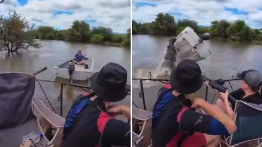 Un hipopótamo volcó un bote en el parque nacional Kruger, en Sudáfrica, durante una operación de reubicación debido a las inundaciones. En el video se observa cómo el animal sale repentinamente del agua y arremete contra el bote, volteándolo por completo y arrojando a su ocupante al río. El hombre rápidamente salió del agua y se subió a la parte inferior de la barca sin resultar herido.