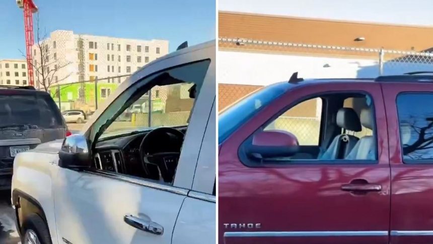 Un usuario de redes sociales publicó un video en el que se ven múltiples vehículos con los vidrios de las ventanas quebrados. Según afirmó, los daños fueron provocados en unos 60 coches por personas que protestaban contra la presencia de agentes del Servicio de Inmigración y Control de Aduanas de EE.UU. (ICE) en el estado de Minesota.