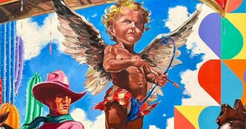 La exposición se enfoca en una serie de obras del artista que exploran simbólicamente temas ligados a imaginarios culturales contemporáneos y su reinterpretación visual.