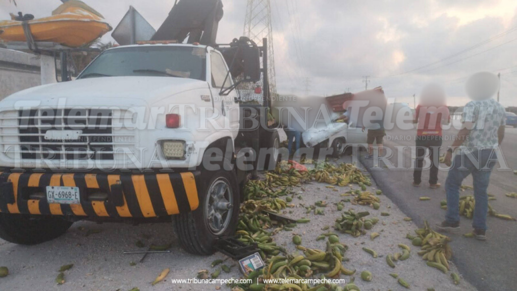 Sobre la carretera federal, a la altura de Playa Bahamitas, tres personas resultaron lesionadas luego de que la unidad en que viajaban y transportaban un cargamento de plátanos y guayabas, se impactó ayer contra la parte trasera de la plancha de un camión tipo hiab, por presunta falla mecánica.