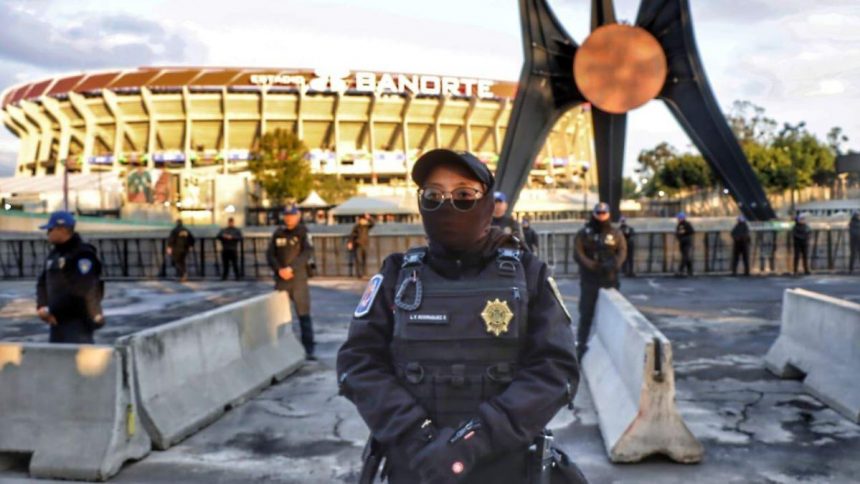 Policías capitalinos resguardadn las inmediaciones del Estadio Banorte – Foto: Ernesto Muñoz / El Sol de México