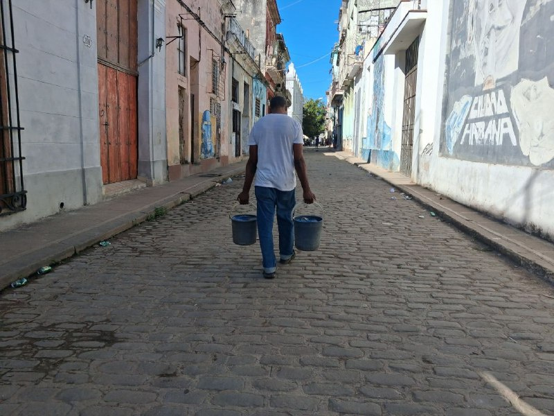En lugar de los ‘almendrones’ que abarrotaban las calles de la capital, ahora solo se ve a gente acarreando agua