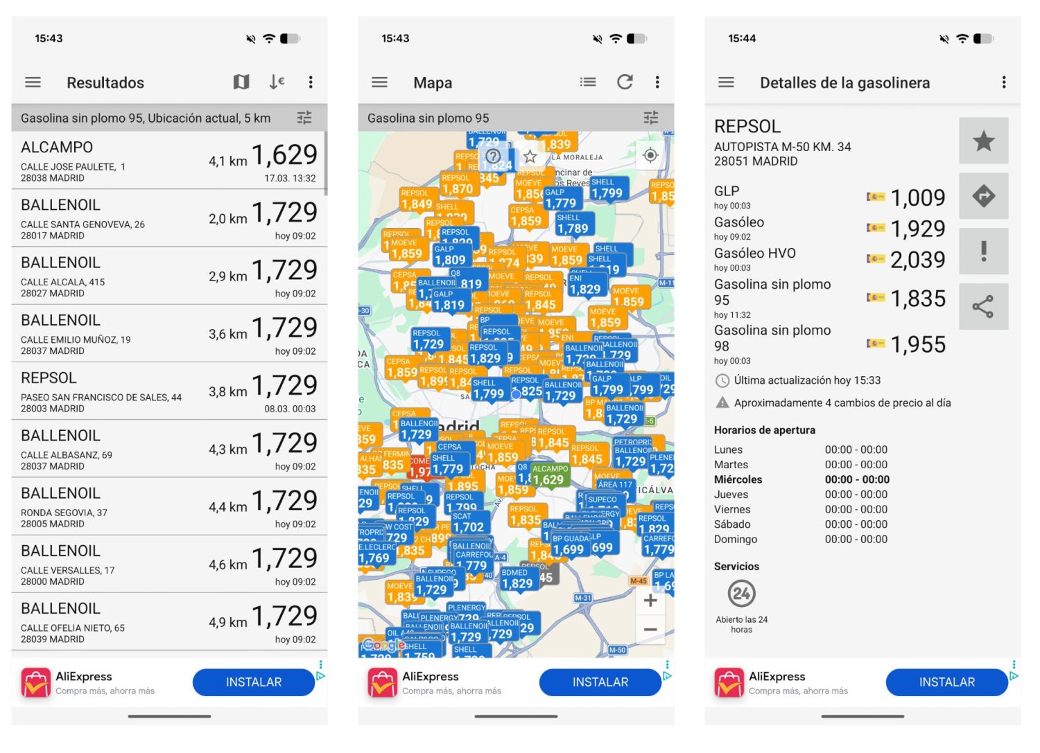 Una vez hayas configurado tus preferencias, la app mostrará un mapa con todas las gasolineras cercanas, así como el precio del carburante en tiempo real. Si lo prefieres, también puedes buscar por calle o dirección, o incluso ver una lista con las gasolineras ordenadas de menor a mayor precio, o las que están más cerca de tu ubicación.