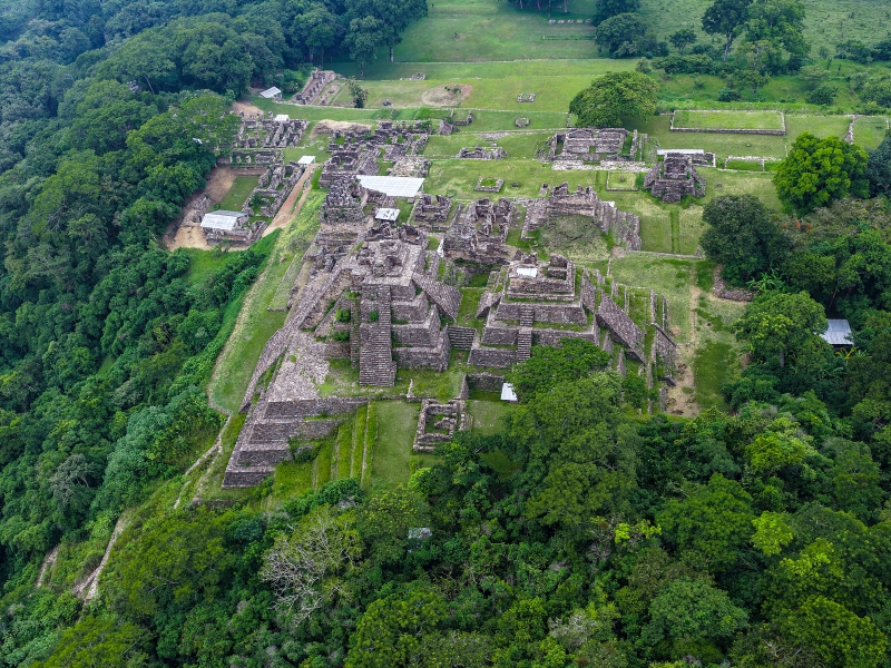 En este contexto, considerada uno de los complejos más relevantes del área maya, Toniná destaca por su imponente acrópolis, edificada sobre un basamento piramidal que supera los 70 metros de altura, así como por su traza ceremonial y su arquitectura monumental.
