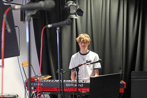 En los pasillos, algunos alumnos cantan con evidente talento. Otros trabajan en silencio en un estudio de grabación.