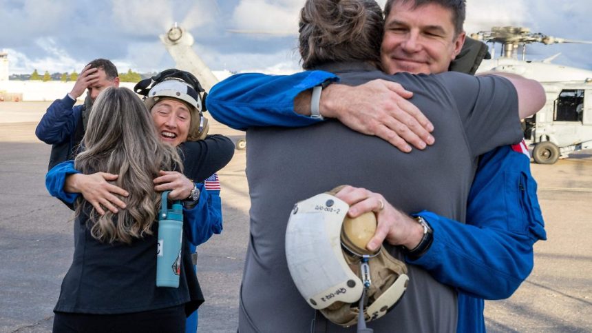 “En el helicóptero y dejando atrás la nave. Este planeta no puede ser más hermoso desde todas las altitudes en las que lo he visto. La superficie a 250 mil millas”. “Misión cumplida”, agregó en otra foto junto a su familia.