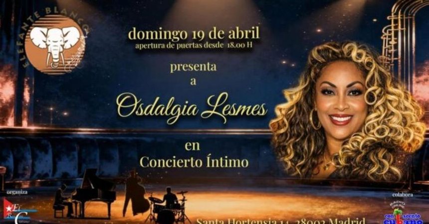 Madrid/La cantante cubana Osdalgia Lesmes se presentará en Madrid el próximo domingo 19 de abril con un concierto íntimo que promete una velada cargada de ritmo y cercanía con el público. Reconocida por su potente voz y su capacidad para mezclar géneros tradicionales con sonoridades contemporáneas, la artista llega al escenario del club Elefante Blanco con un repertorio que recorre boleros, son, timba y otros ritmos caribeños, en un formato íntimo que busca recrear la atmósfera de los conciertos en vivo al estilo de los cabarets y peñas musicales.