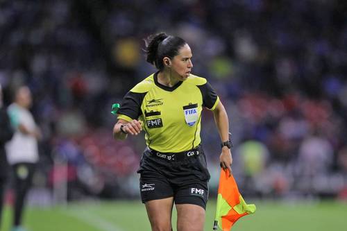 ▲ La jueza de línea Karen Díaz, en vez de tomar distancia y observar con atención la trifulca, para después hacer su reporte, se inmiscuyó y abrazó a Alejandro Zendejas en el pleito luego del América-Toluca.Foto Cuartoscuro