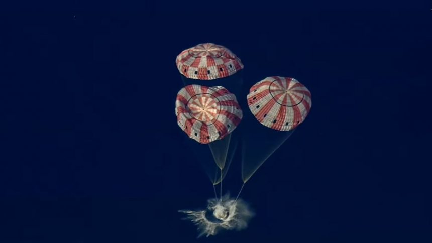 Los cuatro tripulantes se enfrentaron al reingreso a la Tierra, una maniobra tan crítica como el despegue, con una caída a una velocidad 45 veces mayor que la de un avión y temperaturas que rozan la mitad de las de la superficie del Sol.