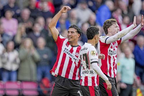 ▲ El PSV Eindhoven se coronó campeón de la liga de los Países Bajos y consiguió su título 27, tras vencer al FC Utrecht (4-3). La escuadra de Peter Bosz aprovechó el tropiezo del Feyenoord Rotterdam en Volendam (0-0) para proclamarse monarca.Foto Afp