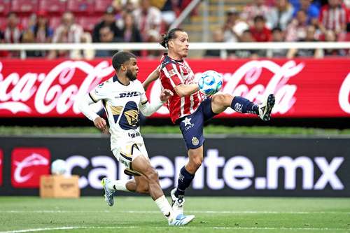 Con un polémico penal en el tramo final, Chivas rescató un empate 2-2 con Pumas para mantener una importante ventaja como líder en la jornada 13 del torneo Clausura 2026 de la Liga Mx. Los rojiblancos llegaron a 31 puntos, cuatro más que su perseguidor Cruz Azul, mientras los felinos se quedaron en el quinto peldaño, con 24 unidades. Armando Hormiga González (70 y 90+11), joven promesa de la selección mexicana, fue el protagonista del encuentro al marcar el doblete que salvó a los tapatíos de lo que pudo haber sido un bochornoso episodio frente a su afición. En la imagen, disputan el balón Lisandro Magallán (izquierda) y Ángel Sepúlveda.